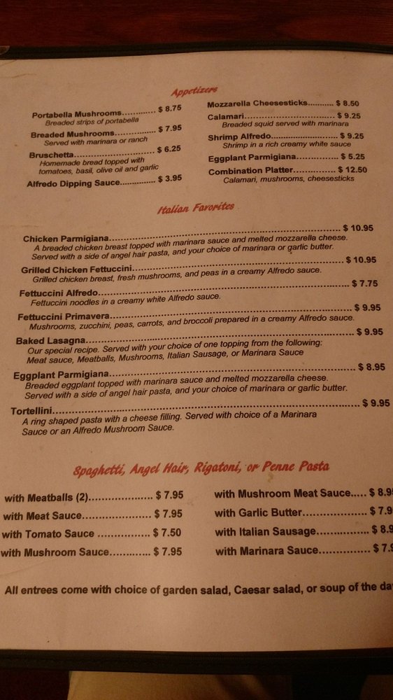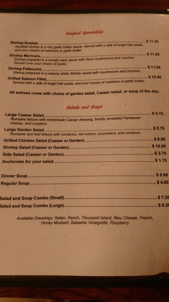 With Meat Sauce. Choose Your Salad Choice: Garden Salad, Caesar Salad, Soup Of The Day
